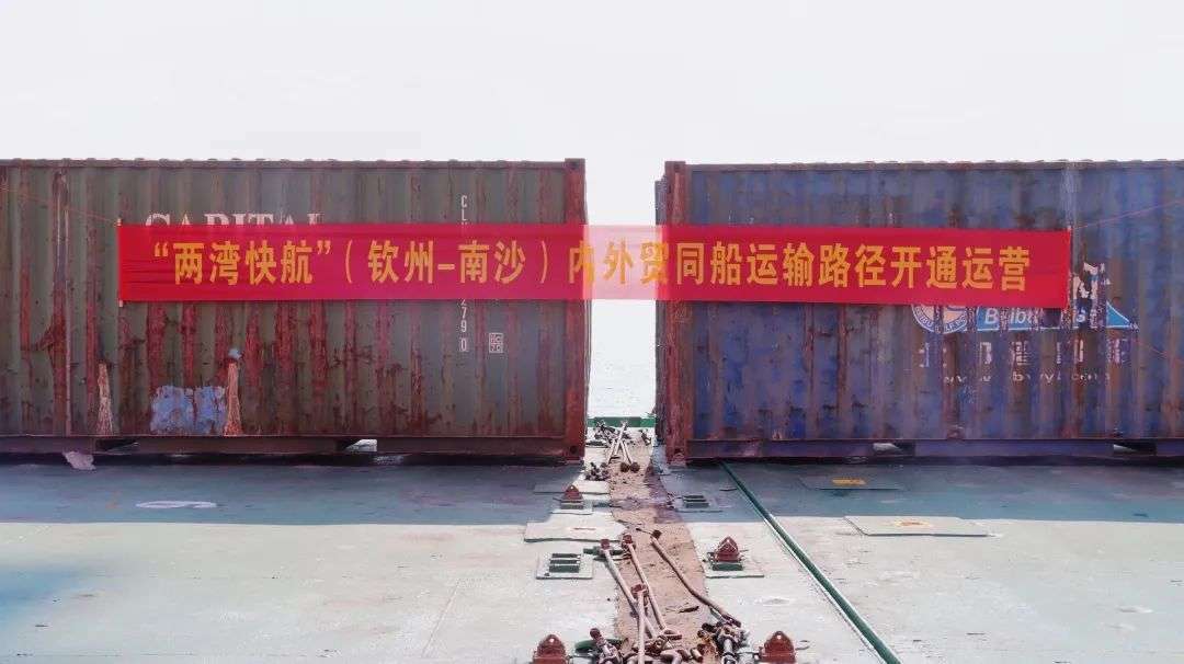钦州-南沙内外贸同船运输的正式开通运营,标志着“两湾快航”实现航线的升级突破,为两广的外贸进出口企业再添一条经济、便捷、高效的海上物流运输通道,进一步织密北部湾港航运网络。