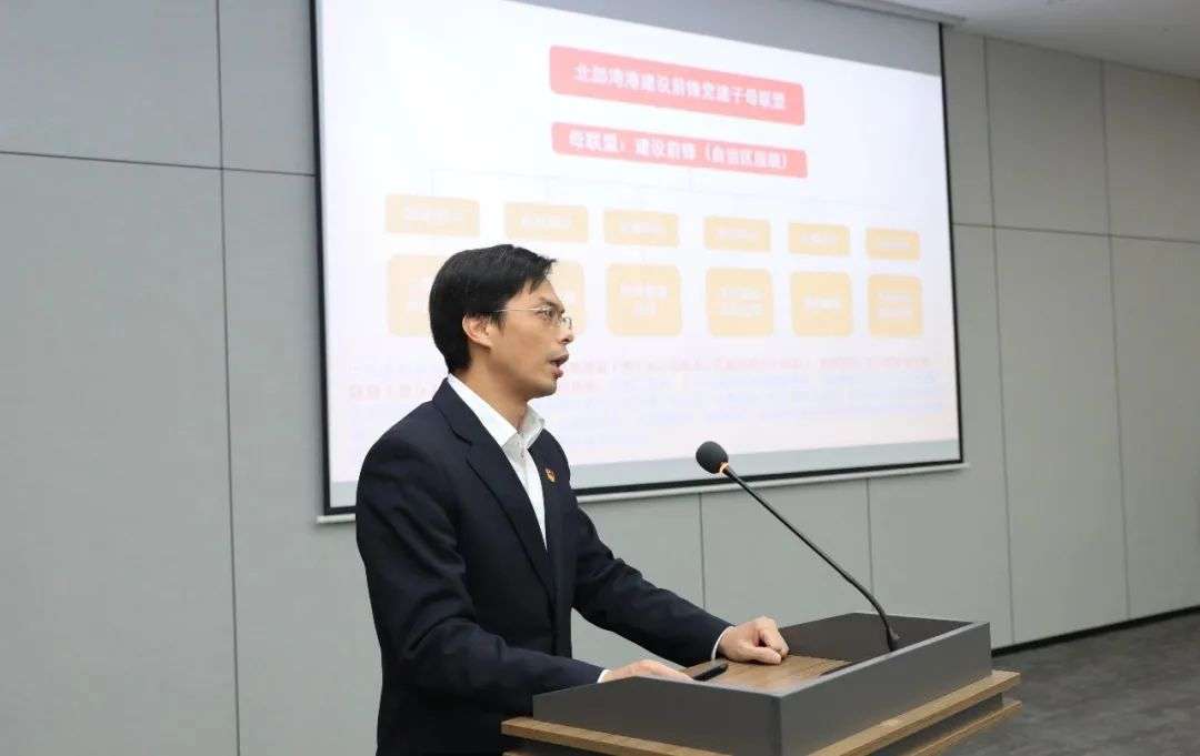 北部湾港建设前锋”党建子母联盟成员代表发言。