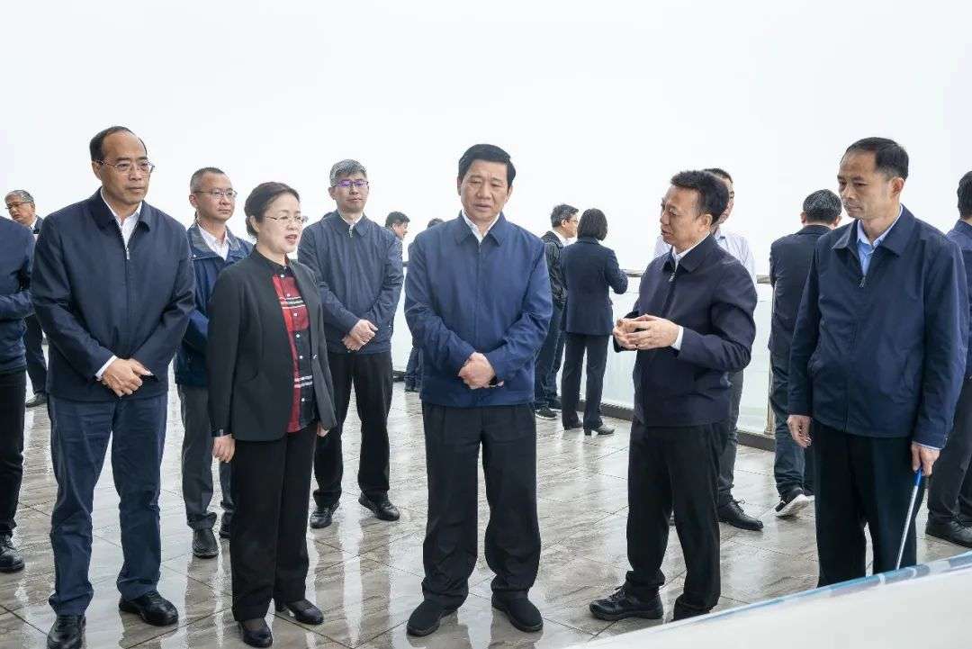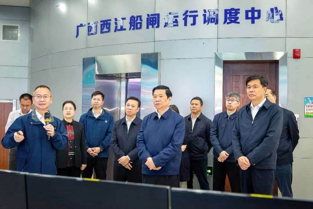 王祥喜一行来到西江船闸运行调度中心瞭望台,观摩船舶进出闸实况,听取长洲船闸运营管理、安全生产等工作情况汇报。