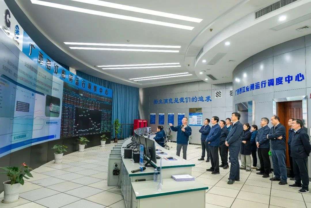 在调度中心大厅,王祥喜了解了西江集团关于联合调度成效、科技创新促进安全生产的举措和防洪备汛等工作情况。