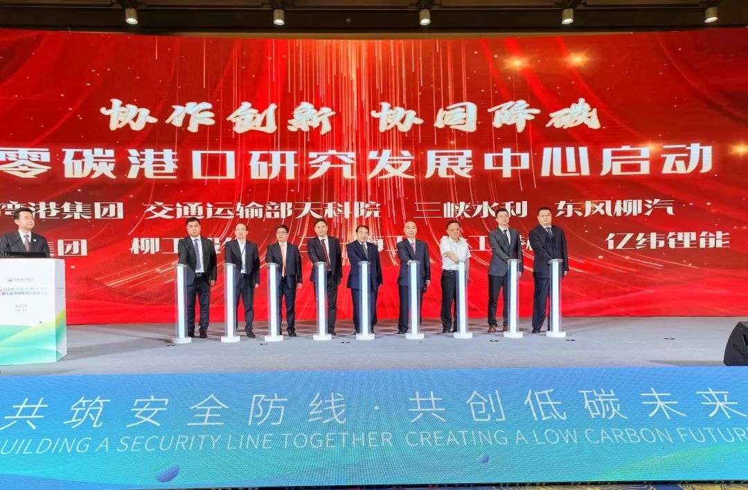论坛上,北部湾港集团副总经理谢毅宣布“零碳港口研究发展中心”成立,并与交通运输部天科院副院长张华庆、东风柳汽党委书记宣颖、玉柴集团总经理申光、柳工股份副总裁朱斌强、三一海工总经理陈静、徐工港机副总经理孙蔚、三峡绿动总经理蒲繁强、亿纬动力总经理张佳良共同按下启动键。