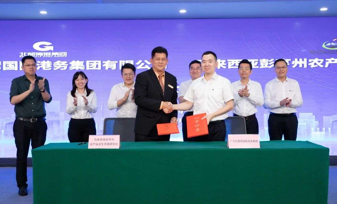 座谈期间,北部湾港集团与彭亨州农产品及生态旅游协会签署合作备忘录。双方将加强在特色农产品物流服务及贸易、生态旅游的合作,实现双方业务优势互补、协同发展。北部湾港集团将发挥其在广西、彭亨州两端港口物流优势,通过关丹-北部湾-中国川渝多式联运航线,为彭亨州农产品、燕窝等货物与中国西部特色产品互联互通提供全程物流服务。