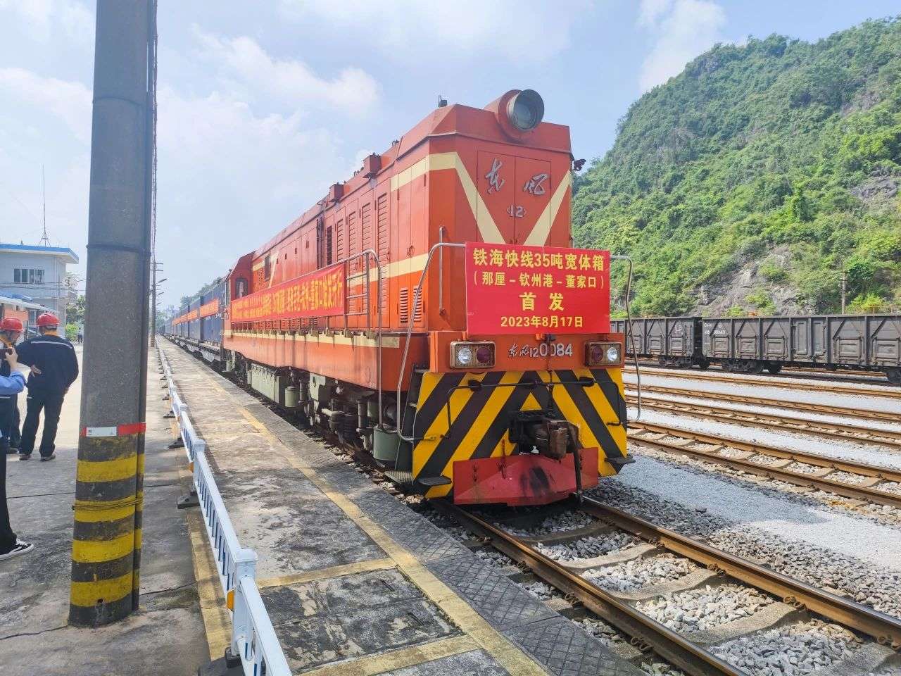 8月17日,一列满载石料的西部陆海新通道“百色—北部湾港—青岛”铁路敞顶集装箱班列,从广西百色那厘站货场驶出,经北部湾港钦州港出海销往山东青岛,标志着全国首列敞顶集装箱海铁联运班列“一箱到底”模式正式开启。