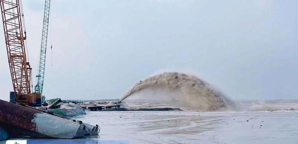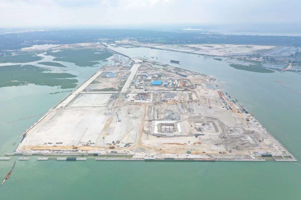 近日(8月31日),随着北海铁山港东岸码头(北海港铁山港东港区榄根作业区1-2号及南1-3号泊位工程)项目后方吹填的节点宣告完成,陆域形成顺利收官,建设取得阶段性的关键节点胜利,为今年10月底水工泊位交工验收、年底完成竣工验收打下坚实基础。
