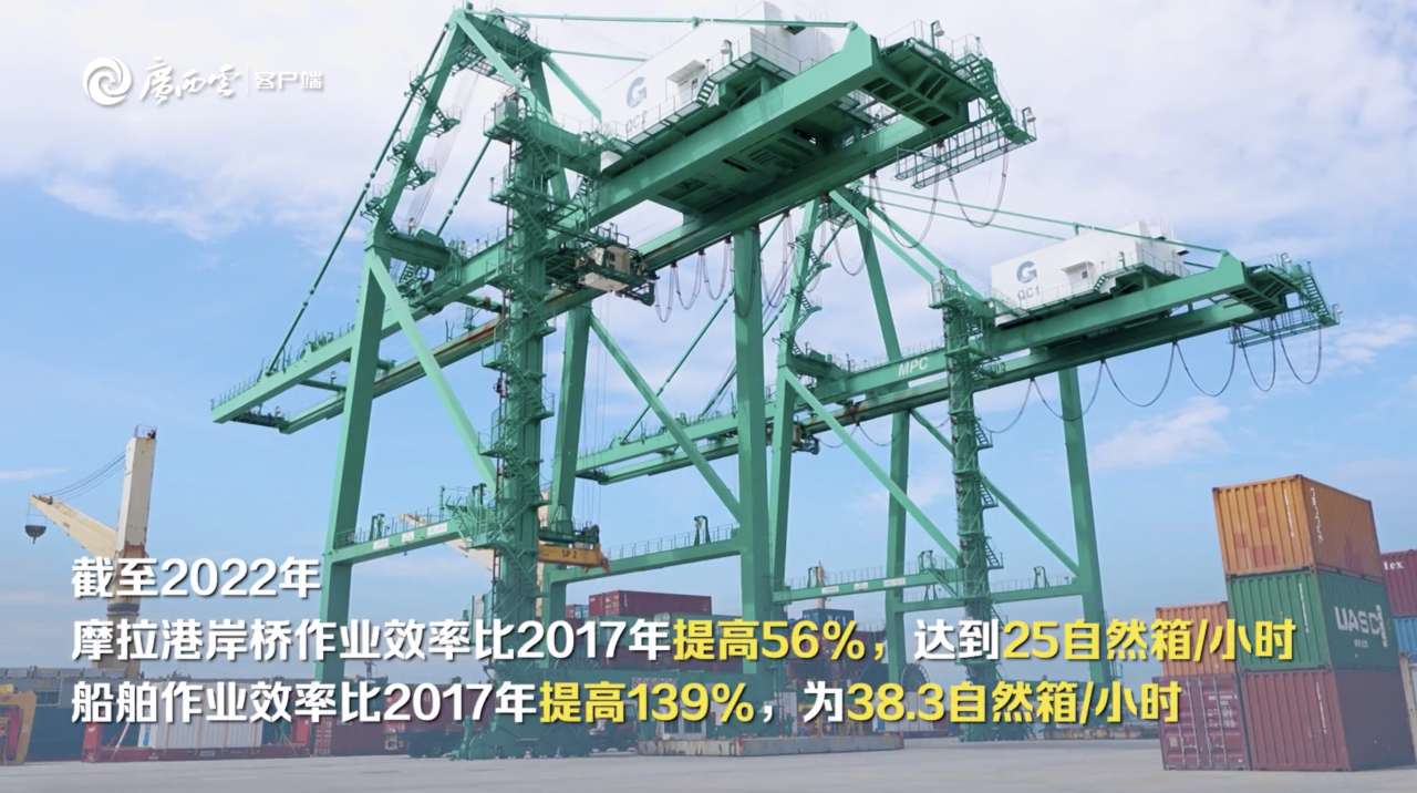 在接管摩拉港集装箱码头5个月后,新增的4台集装箱正面吊、3台集装箱堆高机等流动设备正式投入使用;完成了港口财务系统上线工作,实现港口全面信息化管理;利用北部湾港集团领先的数字经济技术和先进的管理经验,对操作模式、业务流程、现场管理、机械设备进行优化升级,大幅提升货物吞吐能力……