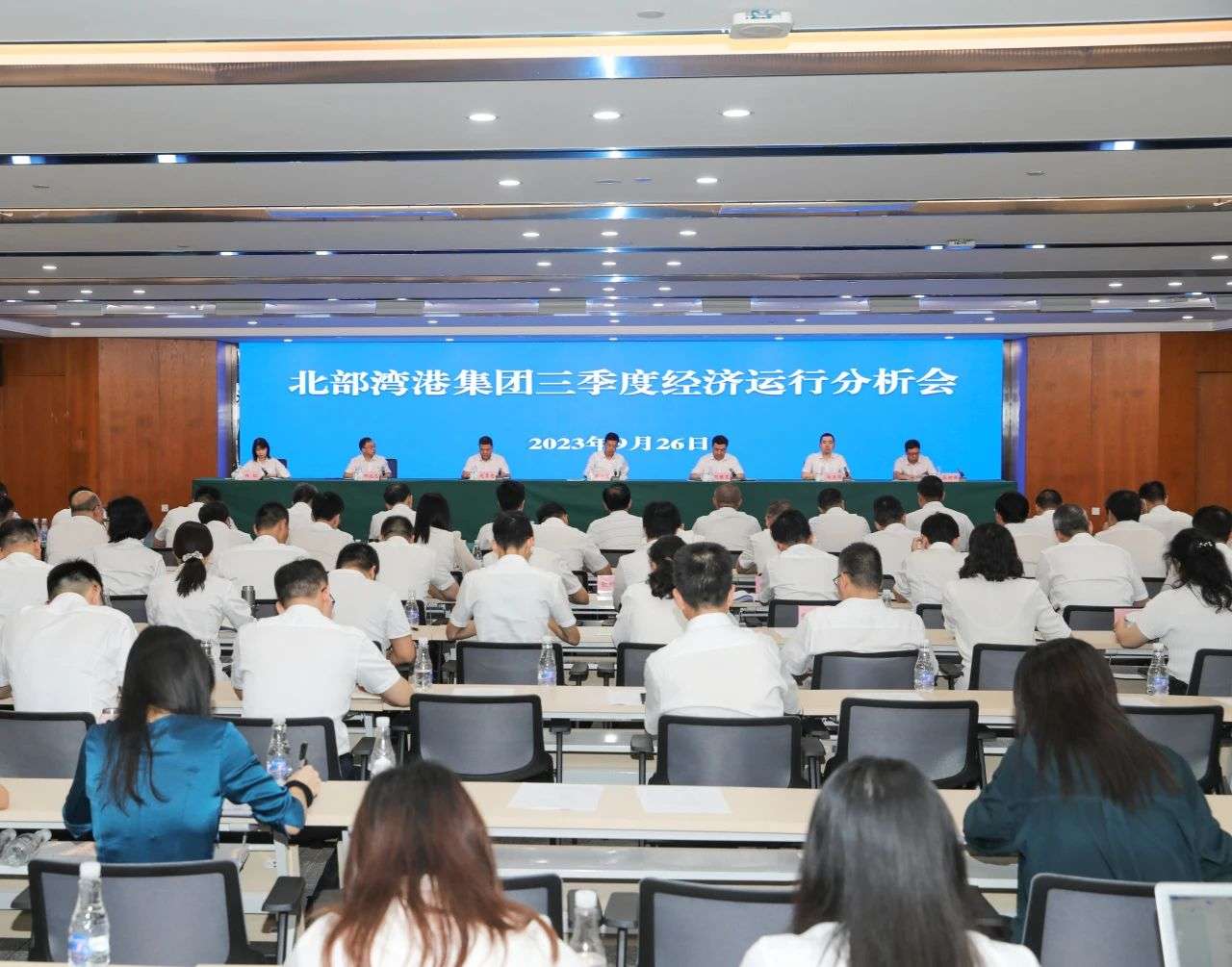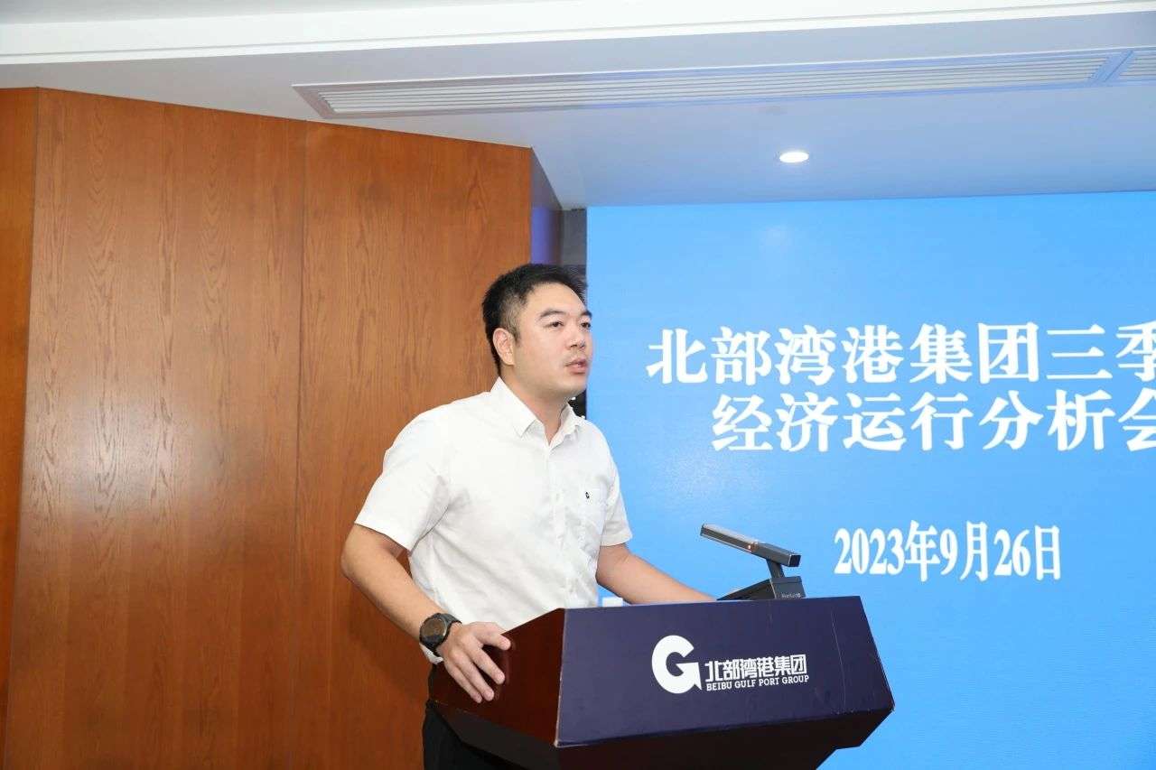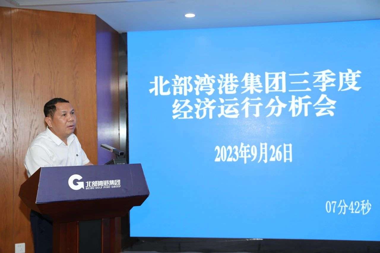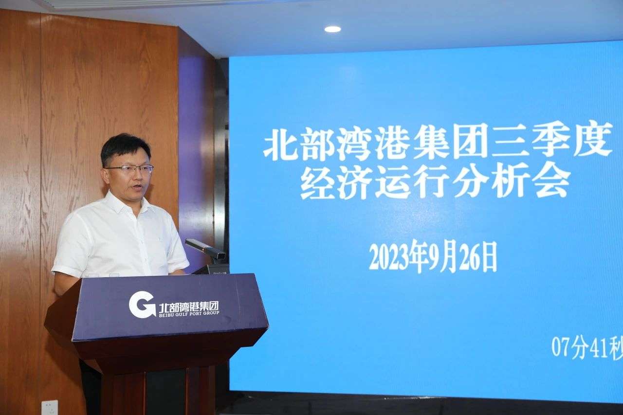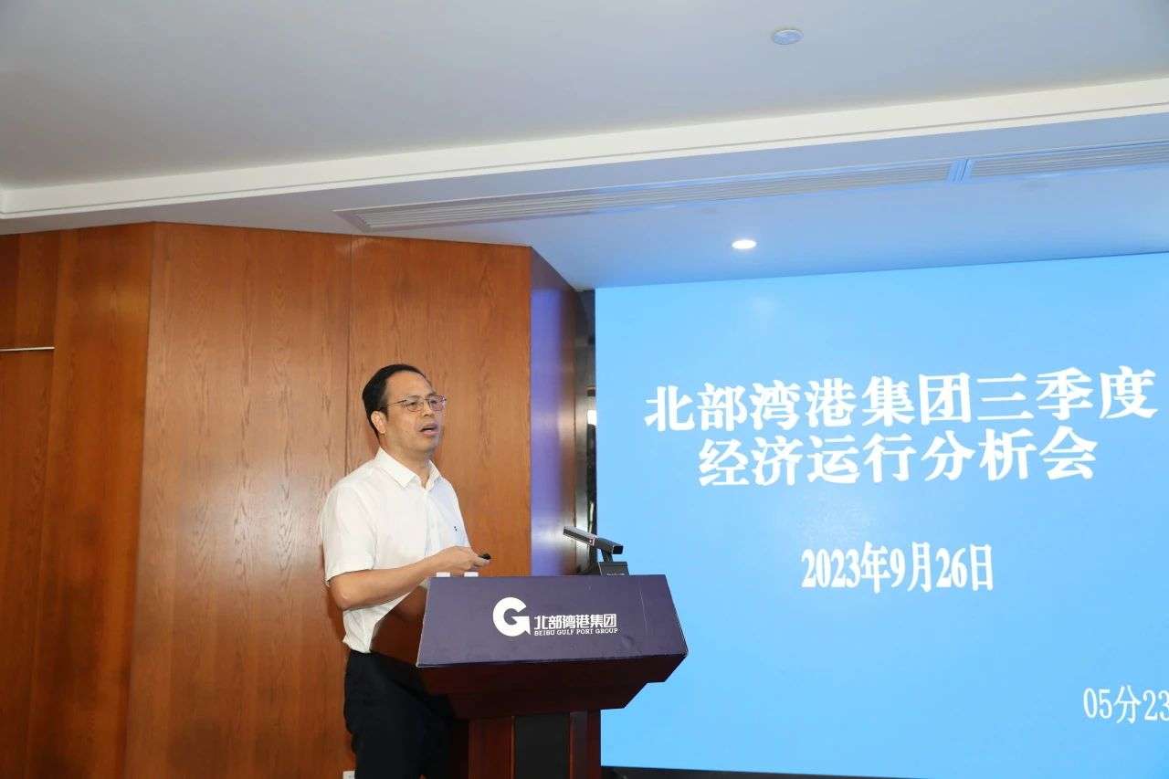 9月26日,北部湾港集团在北部湾航运中心召开三季度经济运行分析会。集团公司党委书记、董事长周少波出席会议并讲话,强调要认真贯彻落实习近平新时代中国特色社会主义思想和党的二十大精神,深入学习贯彻习近平总书记对广西“五个更大”重要要求、视察广西“4·27”重要讲话和“四个一流”重要指示精神,按照中央和自治区的部署要求,坚定“决战”的信心,增强“大干”的斗志,对照全年预定指标,统一思想、团结拼搏,决战四季度、大干一百天,全力以赴完成全年目标任务,努力夺取全年战略目标和经营指标的双胜利、双丰收,推动集团公司改革发展各项事业不断开创新局面、迈上新台阶。