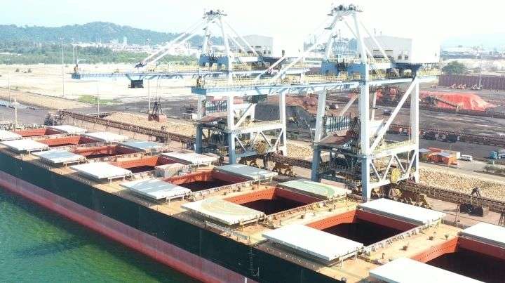 潮新闻记者采访关丹新深水港区这天,阳光灿烂,海面波光粼粼,10万吨级的货轮FJ IRIS号停在码头,正在卸煤。堆料场内,一辆辆满载矿石的运输车辆来回穿梭,一派繁忙景象。关丹港新深水港区设备副经理蔡始兴告诉记者,这里原来水深只有12.5米,只能泊5万吨级的船,经过改造后,现在水深达18米,能泊15万吨级的船,吞吐能力从原来的2600万吨提升到5200万吨。