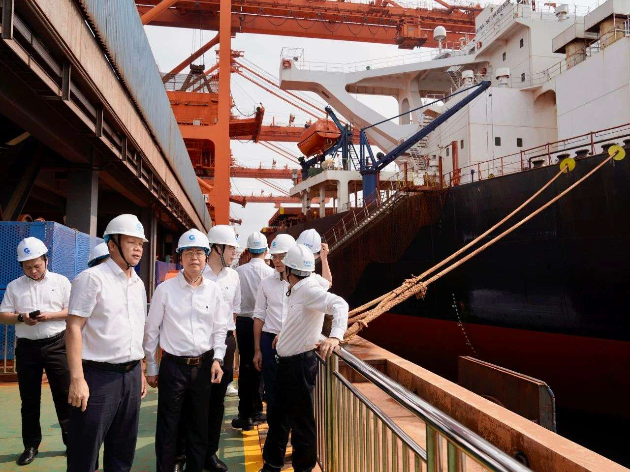 在防城港码头401号泊位,周少波详细了解了防城港水运疏港通道线路安排、防城港域布局规划,以及防城港渔澫港区第四作业区401号泊位工程建设等情况,并对下一步工作提出要求。